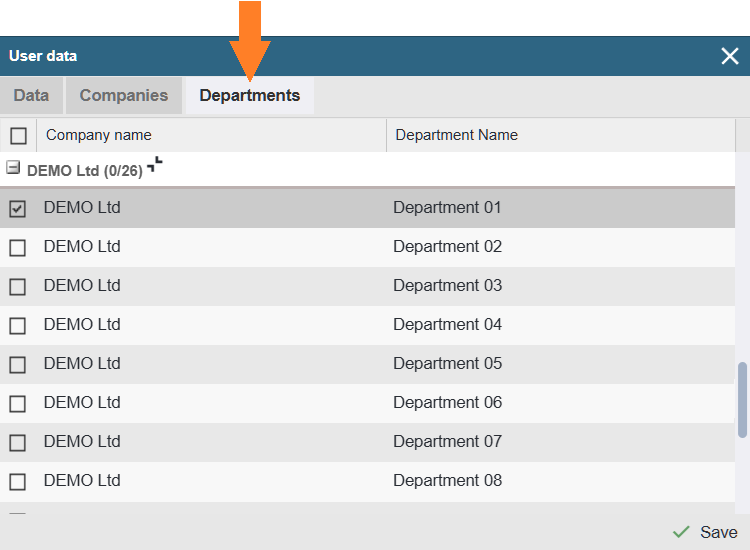 Go to the ‘Departments’ tab and select the desired options.
