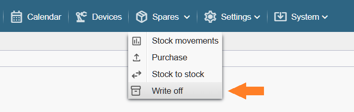 If there arises a situation where stock levels need to be reduced outside of a work order, this can be done by writing off spare parts.