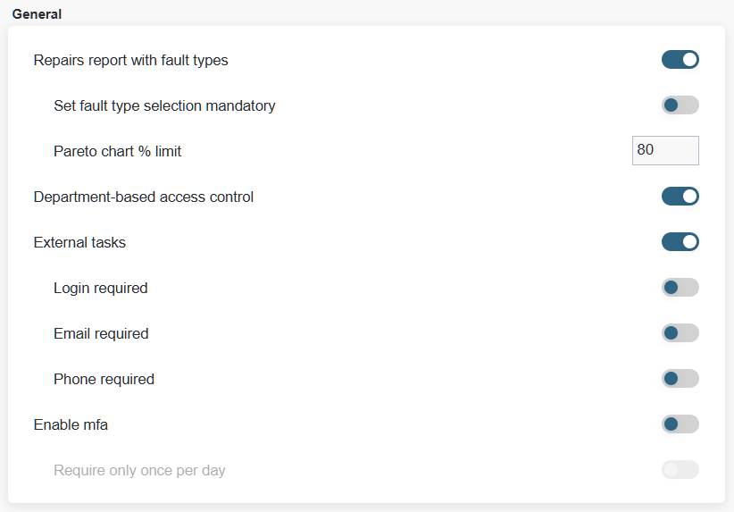 Repairs report with fault types: Allows you to introduce fault classification and analysis by fault type. To activate the feature, the page needs to be reloaded (click on the “Refresh” button in the browser or the F5 key on the keyboard). The creation of fault types is done from the devices category configuration window.