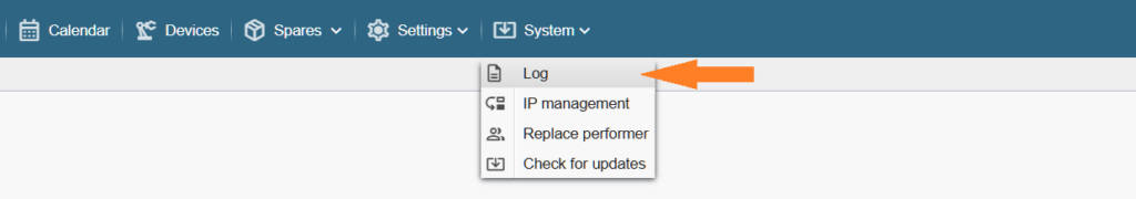 The system log can be found in the top button bar ‘System > Log’.