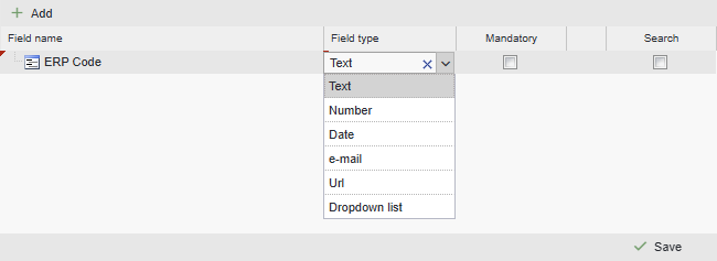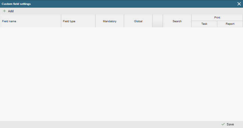 To create a new custom field, click on the “Add” button and enter a name in the added row.