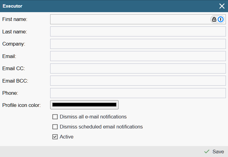 Disable all email notifications: When this option is activated, the application does not send automatic notifications to the performer’s address (including the regular morning notification and work orders assigned to the performer during the day).