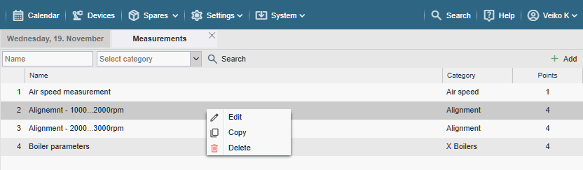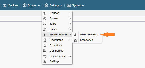 Note! If you do not see the referenced menu links in the Alldevice CMMS application, you either lack the necessary permission to manage measurements or the measurement functionality has not been activated.