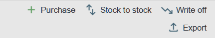 • Entry type – Type of the stock movement entry (Purchase, Stock to Stock, Write‑off)