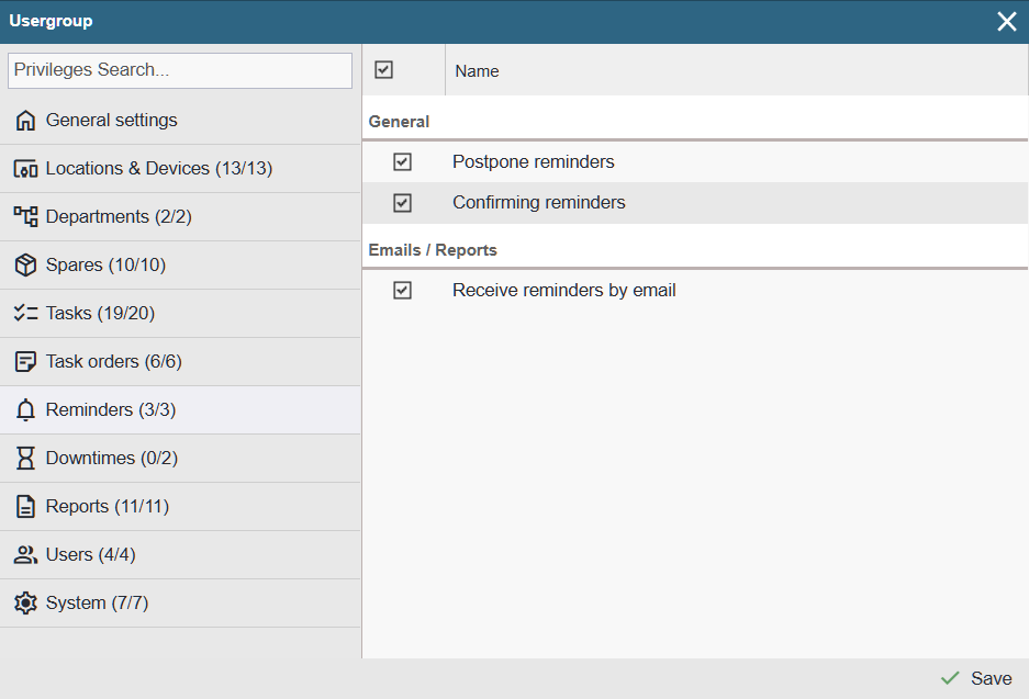Postpone reminders – Allows the user to postpone reminders.