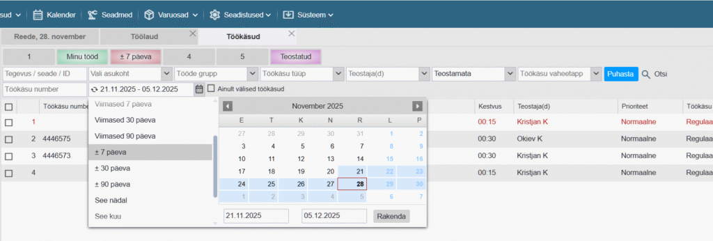 - [#758] Enamus tabelites uuendatud kuupäeva filtri loogika ja liides. Alates ja Kuni kuupäeva lahtrid asendatud ühe väljaga kus saab manuaalselt määrata alguse, lõpu, vahemiku või valida eelseadistatud valikutest.