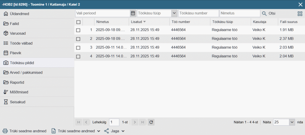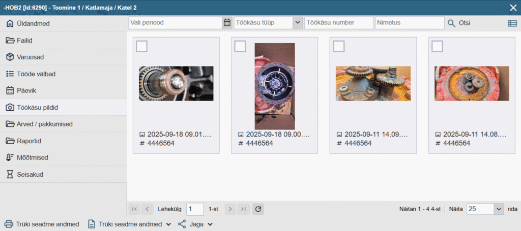 Seadme liikumise ajalugu hakatakse kuvama alates uuenduse hetkest ning see ei oma tagasiulatuvat mõju. - [#783] Seadmekaardile lisatud uus leht (tab) “Töökäsu pildid” kus kuvatakse kõik pildid mis on töökäskudele jäetud. Võimalus valida nimekirja või ruudustiku vaate vahel.