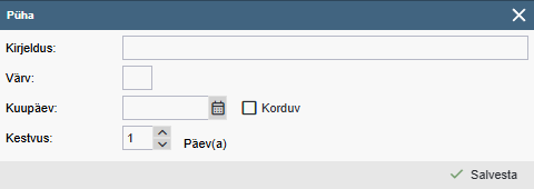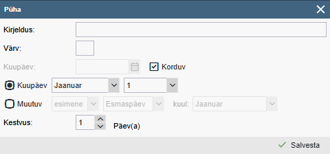 - Kirjeldus – Sisestatava püha/tähtpäeva nimetus