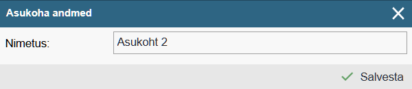 NB! Asukoht luuakse selle asukoha sisse, millelt avasid konteksti menüü. Kui klikkisid juurasukohal, luuakse uus asukoht esimesele tasandile. Kui klikkisid mõnel olemasoleval asukohal, luuakse uus asukoht selle sisse. Alamasukohti võib luua niipalju kui vaja. Sügavuse piirang puudub.