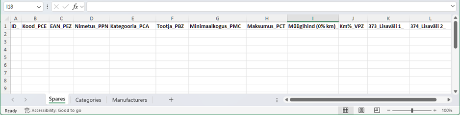 Pea meeles, et fail sisaldab kõiki varuosa kaardil olevaid andmeid (tulpasid), kuid mitte kõik neist ei ole imporditavad/muudetavad, vaid informatiivsed (neid välju impordi käigus ignoreeritakse).