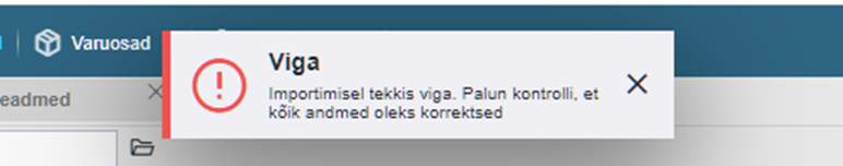 Kui tabel sisaldab vähemalt ühte vigast rida, ei lubata importi lõpule viia. Teile kuvatakse ka vastav veateade ning import katkestatakse koheselt (mitte ühtegi rida ei impordita).