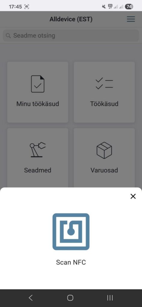 Veendu, et Sinu mobiilseadme NFC lugeja on sisselülitatud. Käivita Alldevice äpp.