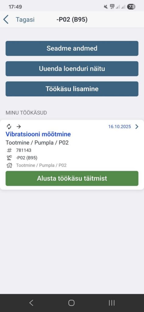 Kui kõik õnnestus, avatakse valitud seadme vahemenüü, kust saad avada seadmekaardi või otse käivitada seadmega seotud aktuaalse töökäsu.