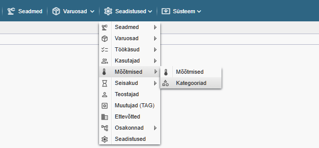 PS! Kui te ei näe Alldevice CMMS rakenduses viidatud menüülinke, puudub teil mõõtmiste kategooriate haldamiseks vastav õigus (privileeg) või ei ole mõõtmiste funktsionaalsus aktiveeritud.