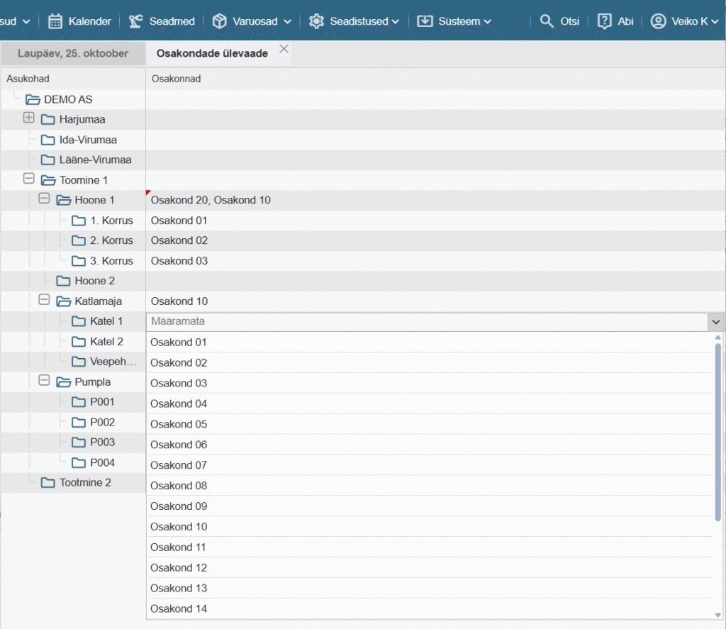 PS! Määratud osakonna mõju rakendub automaatselt ka kõikidele valitud asukohas olevatele alamasukohtadele.