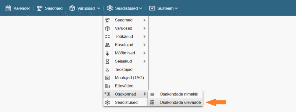 PS! Kui te ei näe Alldevice CMMS rakenduses viidatud menüülinke, puudub teil osakondade haldamiseks vastav õigus (privileeg) või ei ole osakondade funktsionaalsus aktiveeritud.