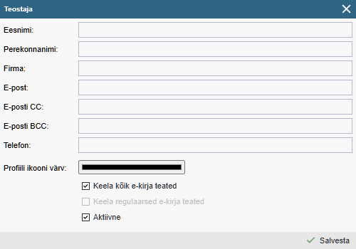 Teostaja aktiveerimiseks või desaktiveerimiseks kliki rea ees oleval märkeruudul. Deaktiveeritud teostajaid ei kuvata töökäsu teostajate nimekirjas (eemaldatakse valikust, kui ei eemaldata töökäskudelt, kuhu on antud teostaja juba määratud).