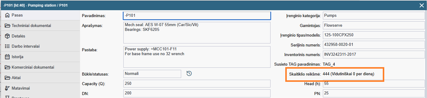 Periodinių darbų pagal skaitiklį data yra perskaičiuojama kiekvieną rytą. Tai reiškia, kad augant įrenginio naudojimo intesyvumui, sekančio darbo data vis priartės prie šiandienos datos.
