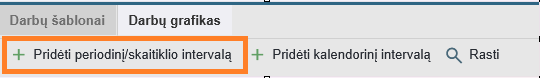 Darbas: Nurodo, kuris periodinio darbo šablonas bus naudojamas šiam intervalui.