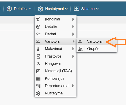 Pastaba! Jei Alldevice CMMS programoje nematote paminėtų meniu parinkčių, vadinasi jūsų vartotojui nesuteiktos teisės kitų vartotojų valdymui.