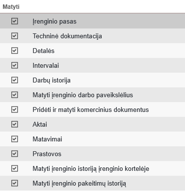 Pastaba! Jei vartotojui suteikta teisė „Pridėti ir koreguoti įrenginius” tuomet nėra galimybės paslėpti įrenginio paso skilties (pagal nutylėjimą ji tampa aktyvi).
